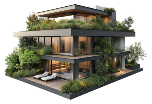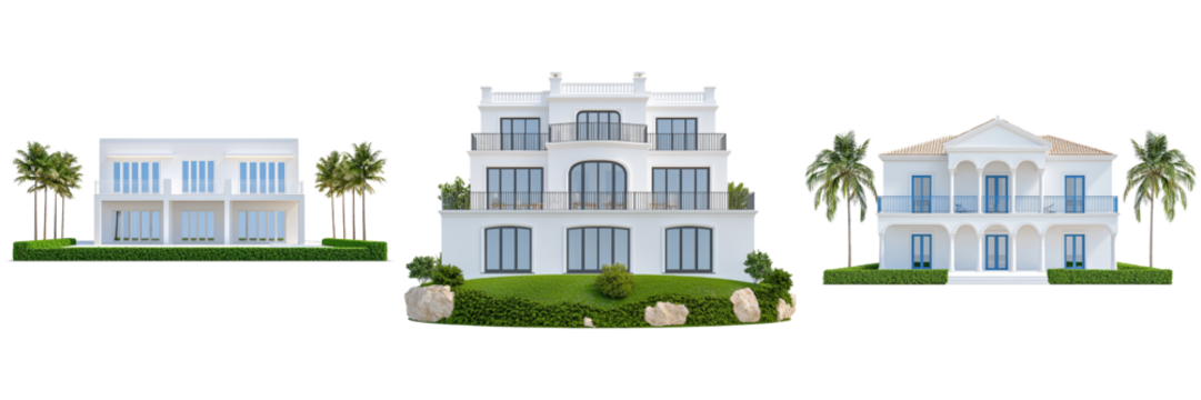 Modern architectural house seaside exterior view minimalist design isolated on transparent background