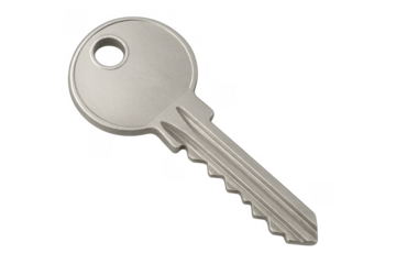 Silver metallic key on transparent background for security concepts