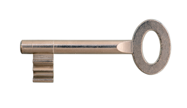 Brown rustic key on transparent background for security themes