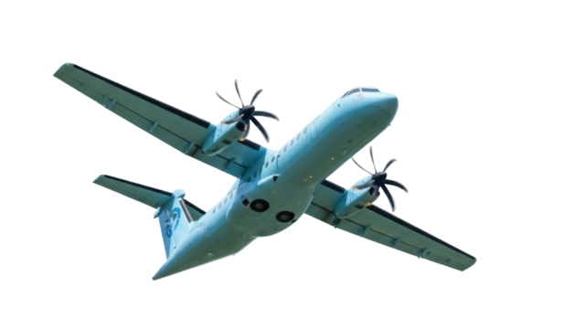 Turboprop airplane PNG isolated on transparent background, regional airliner with propellers for travel and transportation design
