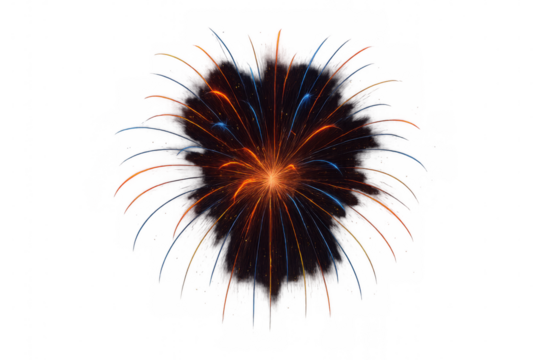 Fireworks burst creating red and orange light trails, celebrating events and holidays, transparent background