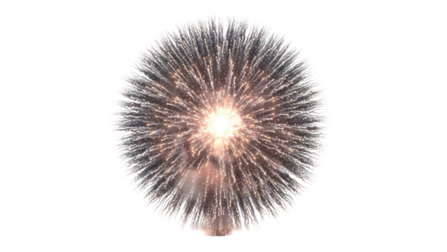 Firework exploding, creating brilliant sparks and colorful light trails with smoke. This isolated element is perfect for overlays