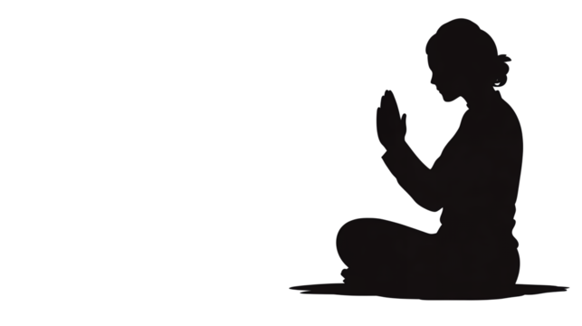 Silhouette of a person praying in Islamic tradition on black background Keywords: prayer, islam, muslim, worship, religion, faith, devotion isolated on a transparent background