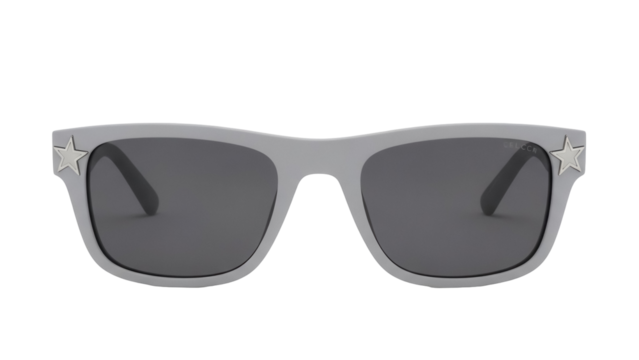 Stylish gray sunglasses with star accents isolated PNG, trendy eyewear for sun protection and fashion accessory on transparent background