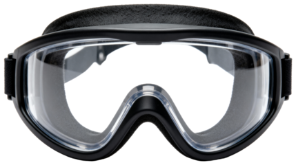 Safety goggles with clear lenses and adjustable black strap for protective eyewear suitable for various industrial and laboratory settings providing excellent visibility and comfort for the wearer