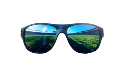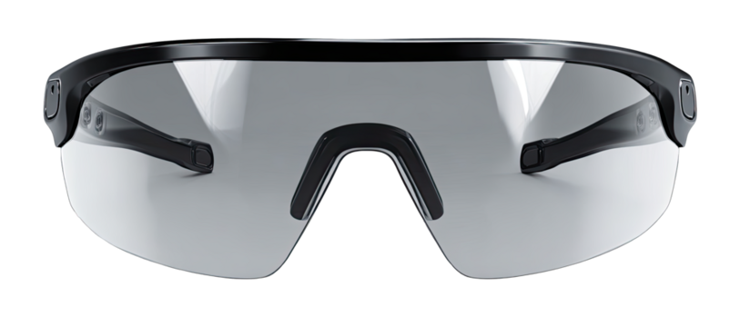 Blue Sport sunglasses isolated on white background with clipping path. Protective eyewear with green lenses and black-purple frame for outdoor cycling, running, or fitness activities PNG File.