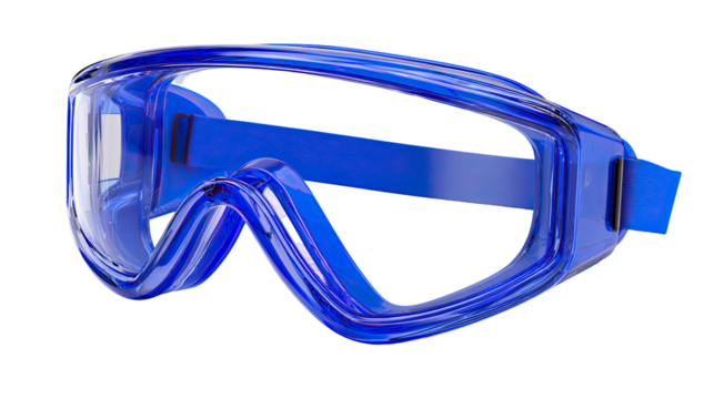 Yellow safety hard hat and protective goggles isolated on transparent background