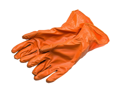 Isolated Two Bright Orange Protective Rubber Gloves