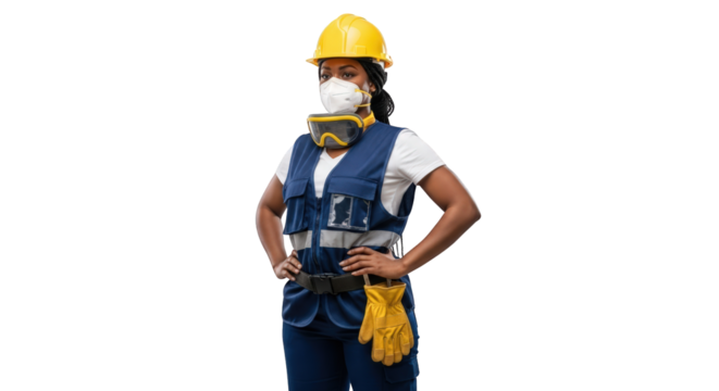 A confident female construction worker portrait 2. featuring worker, construction, female. This image is ideal for use in various financial contexts.