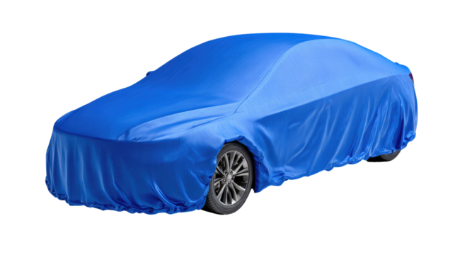 Blue Car Cover Protecting Vehicle isolated on transparent background Remove png, Clipping Path, pen tool
