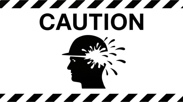 Impactful caution graphic warning of potential head injury hazard, perfect for safety awareness campaigns and industrial settings.