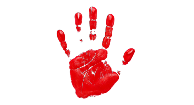 Vibrant red handprint on a clean surface, isolated on transparent background