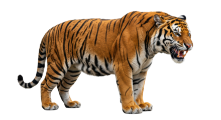 Isolated Ferocious Tiger Prowling with Sharp Teeth Displayed