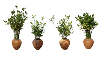 Bamboo in a brown clay pot for pruning tree for garden decoration.