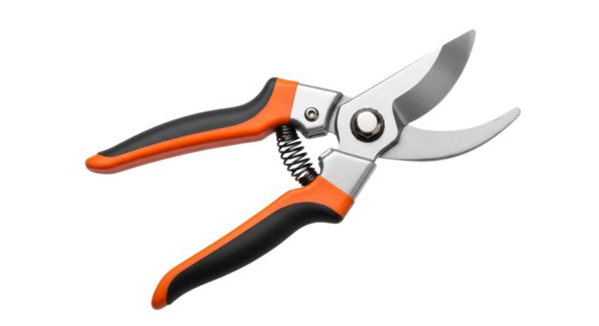 Ergonomic pruning shears with orange and black grip, essential gardening tool for professional horticulture or home gardening precision and clean cuts