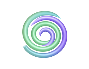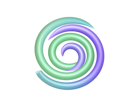 Circular, dual-spiral design with teal and lavender hues.  Soft, 3D effect