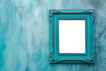 Blue Picture Frame, green bakcground. mocukp. transparente background. PNG