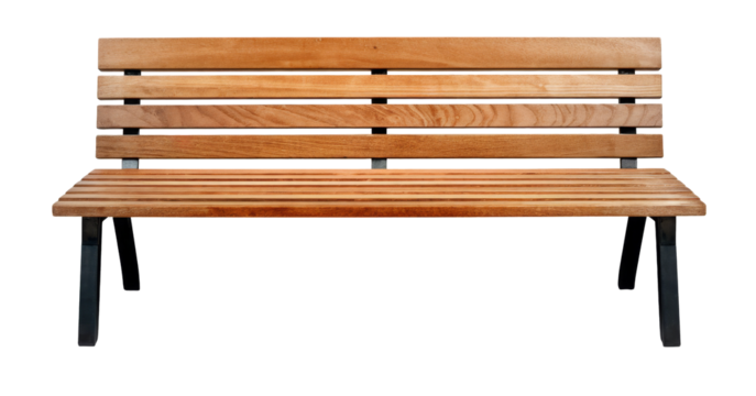 Isolated Classic Wooden and Metal Park Bench for Outdoor Relaxation and Public Seating Areas