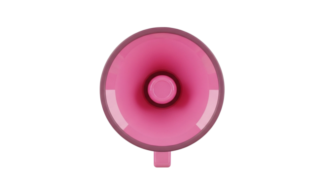 A sleek 3D rendered black megaphone with a glossy finish on a dark background