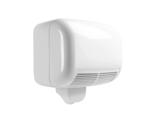 Outdoor public address system horn speaker on a bracket isolated with transparent background