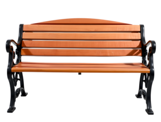 Elegant wrought iron bench with ornate golden accents against transparent canvas