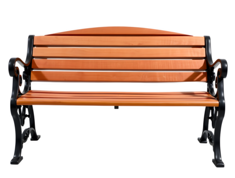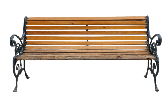 Wooden park bench with ornate wrought iron