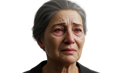 Senior woman face close-up portrait, Isolated On Transparent Background