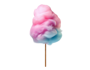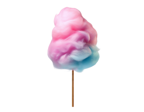 Bright cotton candy on a stick, perfect for celebrations and fairs, cut out