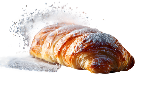 Puerto Rican mallorca sweet roll dusted with powdered sugar, floating PNG