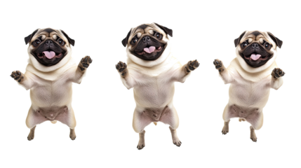 Cute cartoon pug walking happy with transparent design