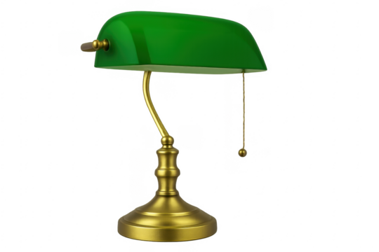 Table lamp with a beige lampshade and bronze base, providing illumination and decor, isolated on a transparent background