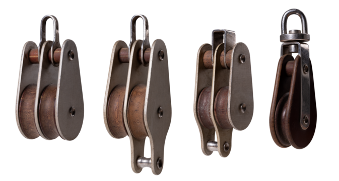 Industrial hand crank winch on wheeled base with heavy rock isolated on a transparent background