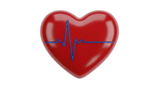 Isolated red heart with blue heartbeat line graphic in the center for health or medical uses