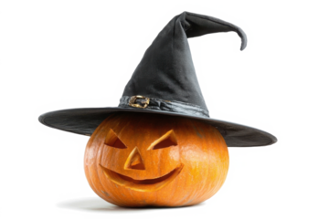 Halloween Pumpkin Wearing Witch Hat on Transparent Background