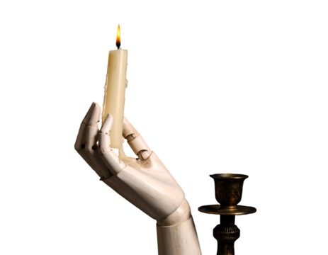 Creepy Skeleton Hand Holding a Candle, hyperrealistic isolated PNG