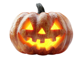 A glowing pumpkin with a spooky face, ideal for Halloween themes and decorations, adding an eerie yet festive vibe.