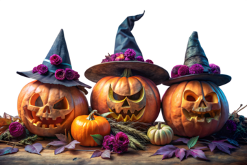 Halloween jack-o'-lanterns on transparent background celebrating festivity