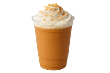 PNG Glass mug of pumpkin spice latte with whipped cream on top