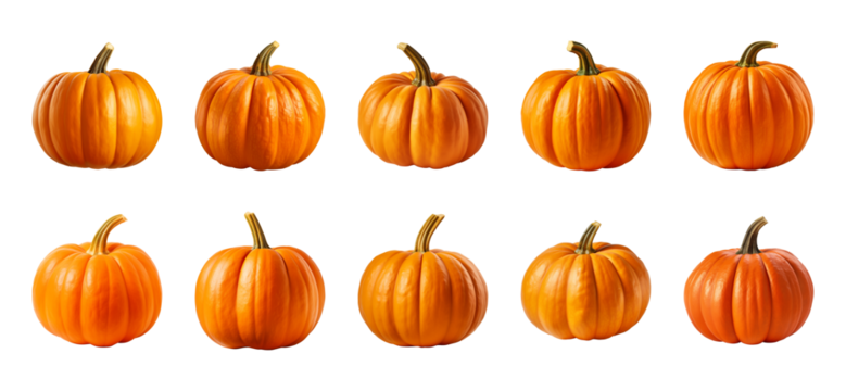 Collection of pumpkins isolated on a transparent background, cut-out, PNG