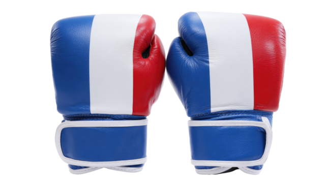 Red and blue boxing gloves punching to the right. isolated on transparent background.