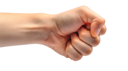 Clenched Fist Powerful Hand Gesture, Strong Arm Muscle for Motivational Themes, isolated on transparent background.