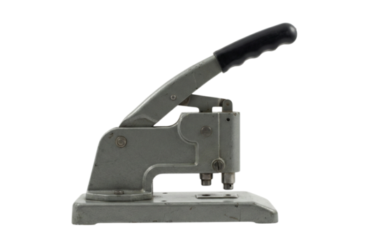 Metallic hole punch tool on transparent background