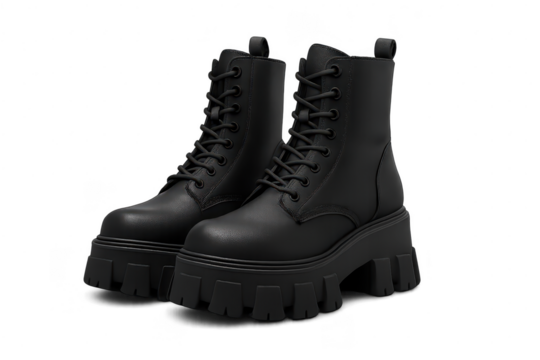 Stylish black leather platform boots chunky sole lace up detail edgy design