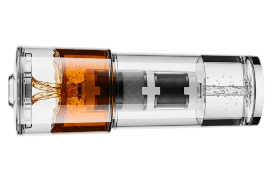 Clear water filter cartridge designed for efficient purification use on a transparent background