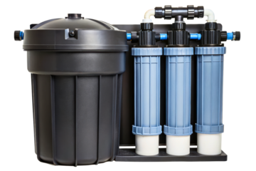Under-sink water filter with high purification efficiency isolated on transparent background