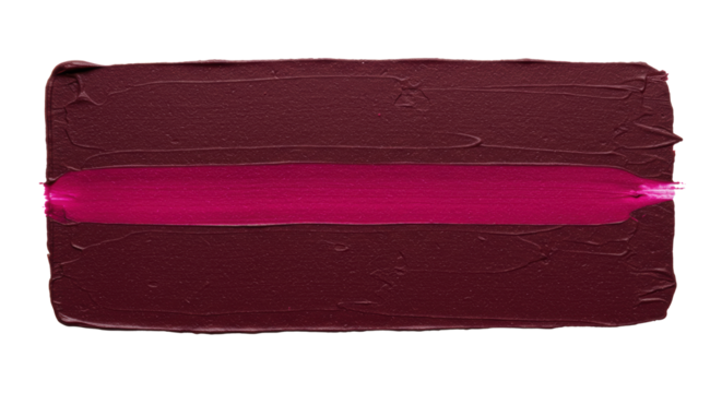 Elongated horizontal dark plum-red paint stroke with subtle purple undertones, fine grainy texture, and a central magenta stripe, on a transparent background with no shadows, top-down view,
