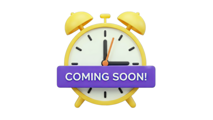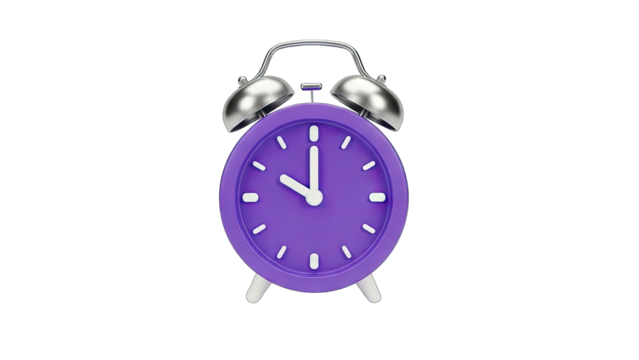 Purple classic alarm clock showing 3 o'clock on transparent background