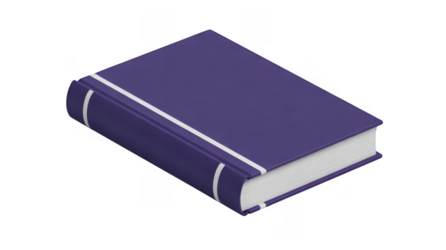 Purple Book with White Pages and Binding isolated on a transparent background
