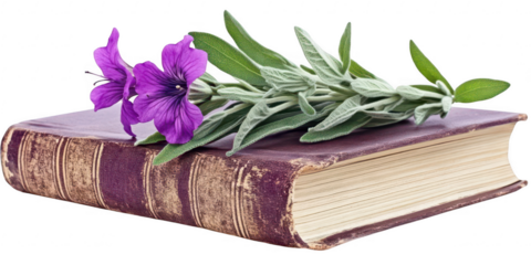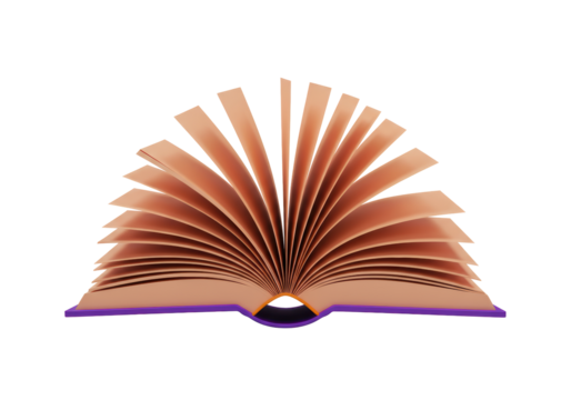 Floating book with purple cover on transparent background