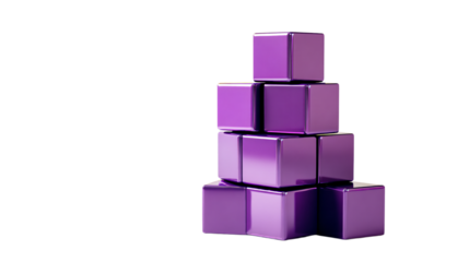 3D Stack of Purple Gift Boxes with Orange Ribbons on transparent background